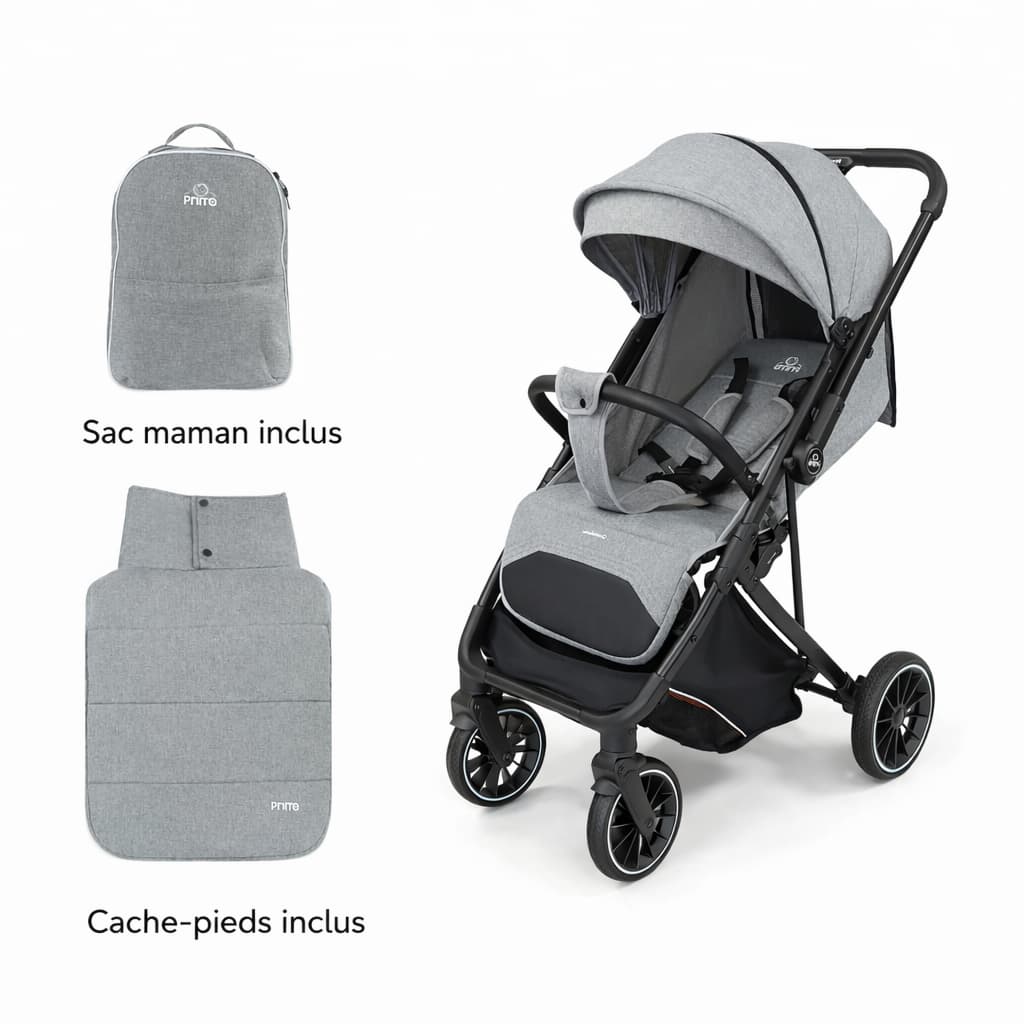 La poussette PRIMO Quotidiano se distingue par sa combinaison entre réversibilité, compacité et maniabilité. Les accessoires inclus permettent une utilisation immédiate sans achat complémentaire, tandis que son design moderne s’intègre facilement au quotidien des familles.